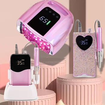 Portable 2 in 1 UV Lamp With Drilll 35000rpm Professional Electric Rechargeable Nail Drill Machine LED Nail Lamp