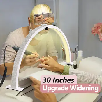 48W Large Size Brightness Crystal Nail Desk Lamp Tattoo Beauty Salon Diamonds Arc Round Half Moon Light Led Nail Table Lamp